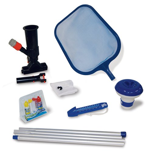 Make pool cleaning easy. This deluxe maintenance kit contains everything needed to keep your pool in tip-top shape for summer fun. Kit includes: Super Promo Test Kit, Pocket Thermometer, 6’ Sectional Pole, Jet Vac, Leaf Skimmer and Chlorine Floater . Read more...